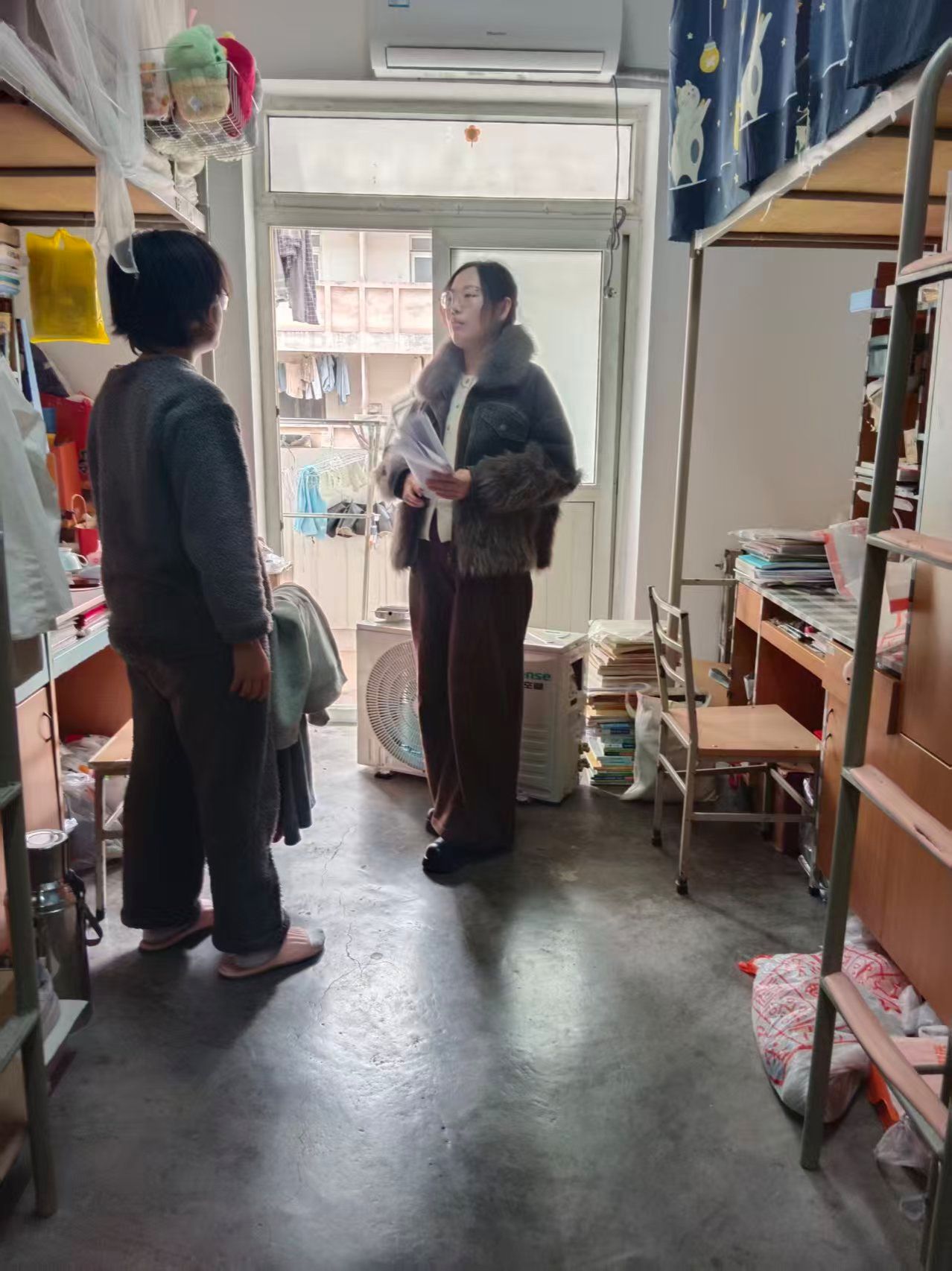 检查中,院党委副书记文毅和全体辅导员老师深入学生宿舍、研究生工作室等场所,对安全卫生状况进行逐一检查,每处检查中,老师们都叮嘱同学们严格遵守宿舍和工作室管理规定,规范用电、做好日常通风,养成良好的生活卫生习惯。大体上宿舍和工作室比较整洁卫生、个人物品摆放有序、日常通风到位,针对发现的个别宿舍阳台杂物堆积、食品垃圾未及时倾倒、物品摆放凌乱等,老师们现场和同学们面对面交流,明确整改时间和标准,做到即查即改、不留死角,消除安全隐患;同时,老师们还了解了同学们的学业、科研情况以及新学期的规划等,鼓励同学们新学期新开始,努力学习,争取取得更大成绩。