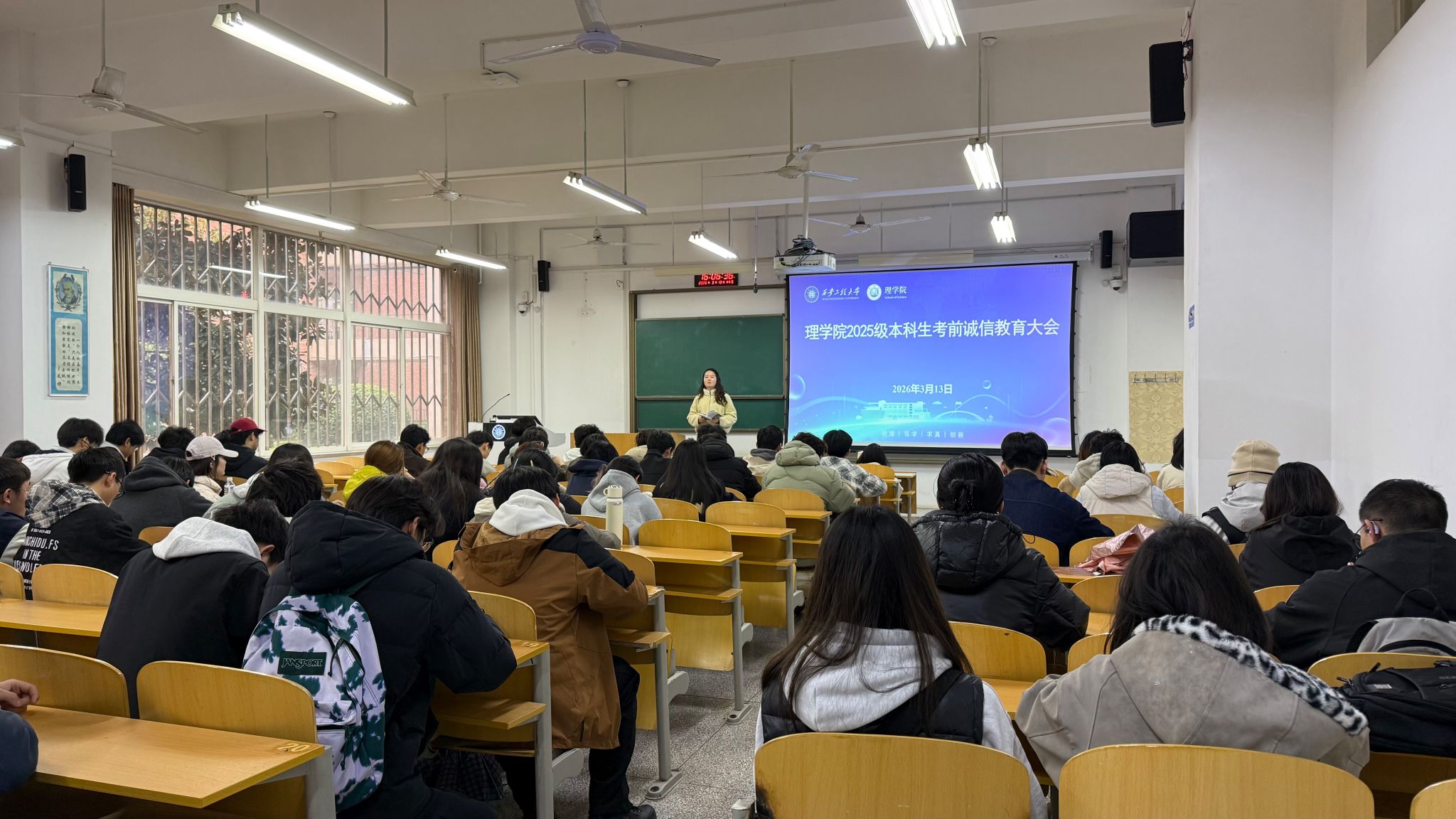 结合补考安排,各年级分别于补考前召开诚信教育会,围绕《学生手册》相关规定,结合真实案例开展警示教育,强化学生纪律意识,明确杜绝作弊行为。还就考试证件、考场规则等注意事项作重点提醒,引导同学们调整心态、认真备考、按时补考;为切实解决学业困难学生的复习问题,学院同步推进“梦桃式”帮扶活动,针对挂科较为集中的课程,开设集中答疑课堂,系统梳理共性难点。各年级选派由学生党员及学生骨干组成的学业帮扶小组,对学业预警同学实施“一对一”精准辅导,制定个性化复习计划,结合“大课+小课”双轨并行的模式答疑解惑,切实将“我为同学做实事”落到实处,助力学生查漏补缺、高效复习;在此期间,学院还重点面向学籍异动学生,由辅导员主动与家长沟通反馈学业情况,介绍补考政策与帮扶措施,推动形成育人共识,共同督促学生认真备考、诚信应考;同时为强化诚信考试氛围,学院还面向全体补考学生发出诚信考试倡议,提醒同学们严守纪律、以真实成绩展现自身水平。(撰稿:展玉强 审稿:文毅)