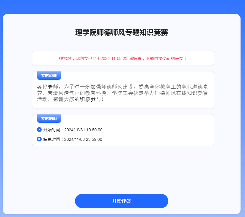 为进一步加强学院师德师风建设,提高全院教职工的职业道德素养,营造风清气正的教育教学氛围,AC米兰中文工会于11月上旬举办了师德师风专题知识竞赛。此次竞赛采取线上答题的方式进行。全院教职员工积极参加,竞赛题目以党的二十届三中全会精神、全国教育大会精神和《关于加强和改进新时代师德师风建设的意见》等为主要内容,涵盖了师德规范、教育法律法规、职业道德建设、等多个方面,旨在通过全面考察教职员工的专业素养和师德修...