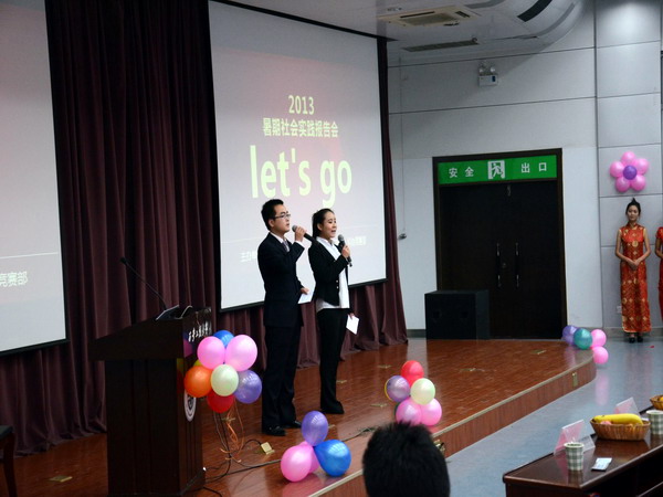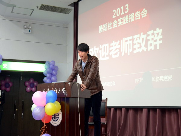 首先由段鹏老师致辞并宣布报告会开始,接着四组报告团队进行了精彩的汇报。2012级数学一班段博文做了“品读红色经典,凝聚青春党旗”的关于红色延安的报告;2012级应用物理二班调查小组做了“大学生运动产品需求情况调查”的报告;接下来为了调节现场气氛,由社团表演了舞蹈“鬼步”;随后2011级应用物理一班的王萍萍同学做了“助教时光 品味生活”的暑期报告;最后2012级数学一班的乔阳做了“中华石鼓园旅游心理调查”的暑期社会实践报告。整个活动内容翔实、生动有趣,激起了同学们对暑期社会实践的兴趣。在活动结束由老师和部分嘉宾为获奖人员颁发证书并合影留念。