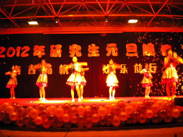 2011年临近结束,新的一年即将来临。为丰富研究生校园文化生活,增进各专业、各学院研究生之间的交流,营造温馨、健康、文明的校园气氛,在2012年元旦来临之际,研究生部组织了青春扬帆,欢乐前行——2012年元旦迎新晚会。出席此次晚会的嘉宾有校团委、研究生部及各个分院主要领导、老师、研究生会成员等,参加晚会的有11级研究生新生及各年级学生。此次晚会于12月29日圆满落下帷幕。