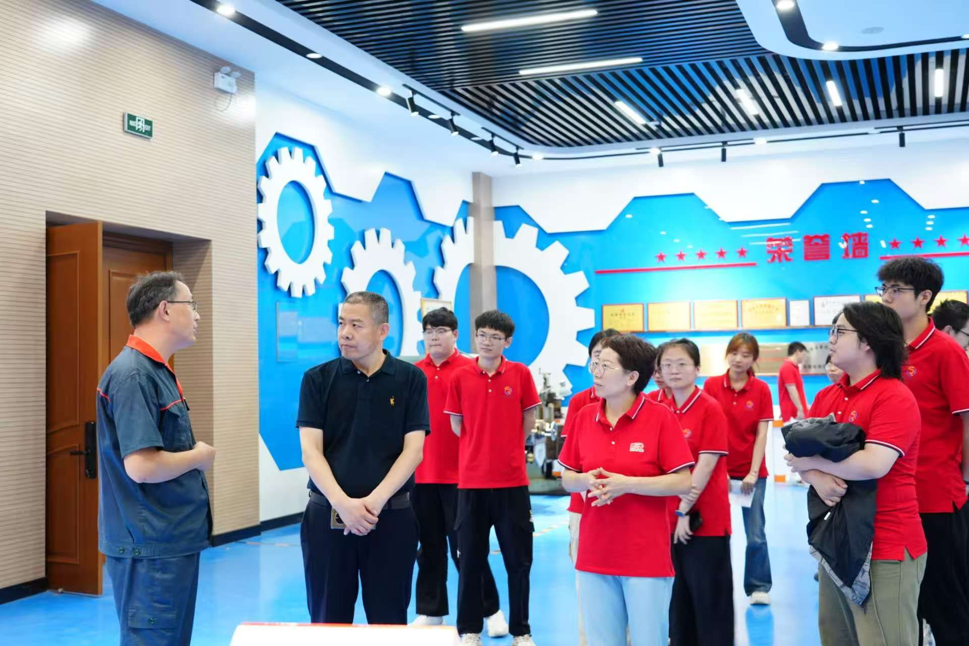 当天实习任务结束后,在公司市场部负责人的带领下,学院师生们一起参观了企业文化展厅,通过详实的图文资料、实物展品及多媒体演示系统了解了企业的发展历程、市场布局及企业文化建设成果等,对企业深耕模具领域的专业精神和创新理念有了更直观的认识。接着,双方进行了座谈,刘玉森对企业为学生提供的优质实践平台和完善的生活保障表示感谢。双方与会人员围绕实习课程设置、校企协同育人模式等进行深入探讨,在推进产学研合作方面进一步开展更紧密的合作达成共识。