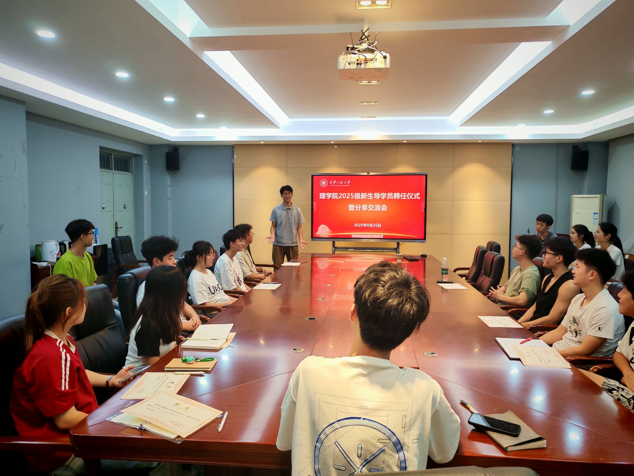 8月25日晚,AC米兰中文在物理实验楼430会议室召开2025级新生导学员聘任仪式暨经验分享交流会。2025级本科生辅导员宋晓盼、2024级导学员及新聘导学员等30余人参会。