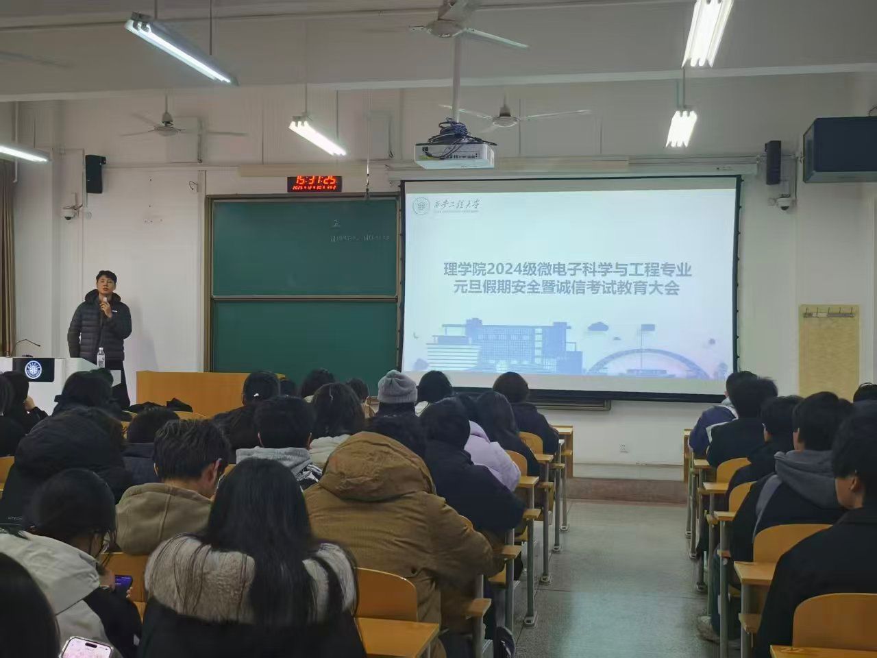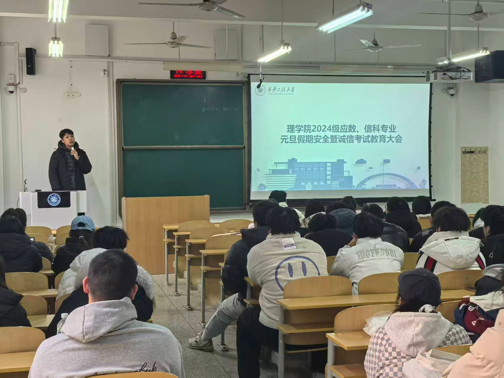 为扎实做好假期安全教育,强化学风考纪,引导学生做好阶段性学业总结与未来规划,12月30日下午,2024级辅导员展玉强以专业为单位组织召开了2024级本科生元旦假期安全暨诚信考试教育大会。全体2024级本科生参会。