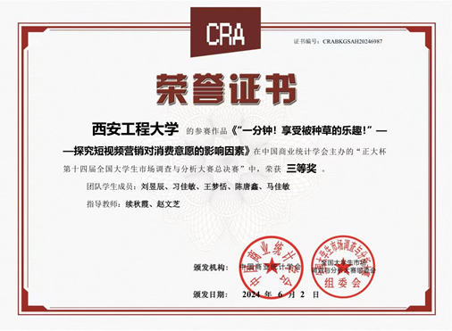 AC米兰中文为做好此次竞赛,组建由数学学科赵文芝、续秋霞等专业教师为指导教师的团队,经过校赛,省赛和国赛的角逐,最终取得佳绩,除国赛获奖外,还获本科组省级一等奖3项、省级二等奖1项,三等奖3项,获奖等级和获奖个数均属历史最佳。在备赛过程中,学院指导教师就理论知识网考、选题方向、调查方案设计、文献阅读、统计分析方法选取、报告的撰写和现场答辩等多个环节对参赛学生进行系统指导,引导学生关注社会和经济发展的现实问题,围绕主题展开深入调查研究。在学校和学院的大力支持和鼓励下,在指导教师和参赛队员的共同努力下,团队对选题反复讨论,对调查方案不断完善,对数据分析方法不断改进,对作品不断打磨,对PPT视频讲解反复演练,力求精益求精,历时七个月,最终获奖。
