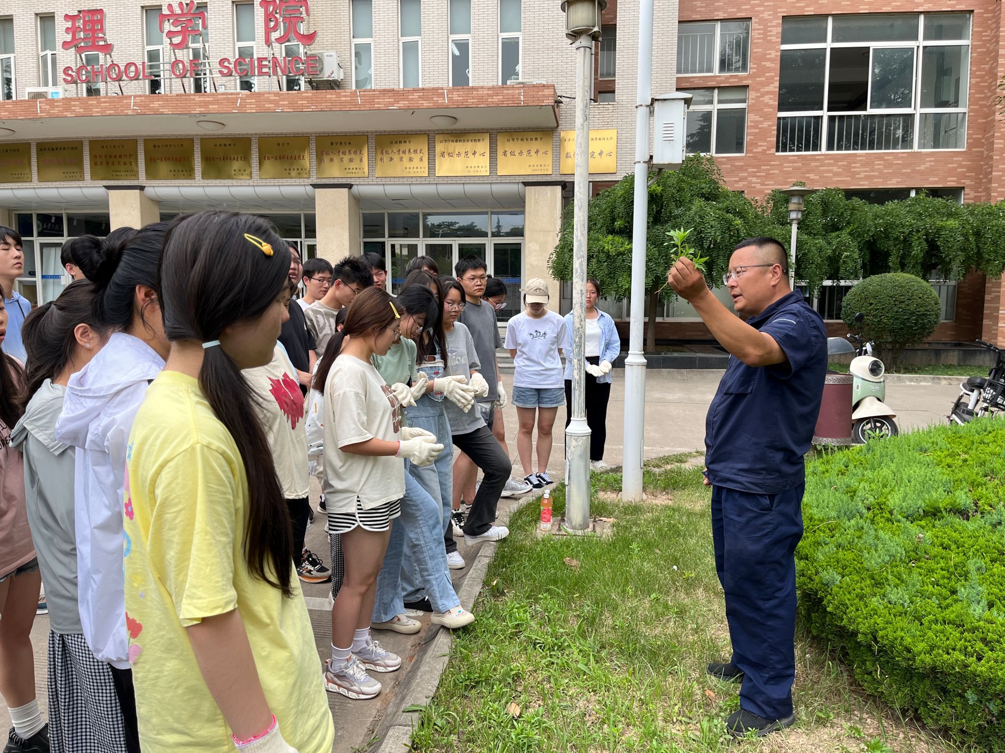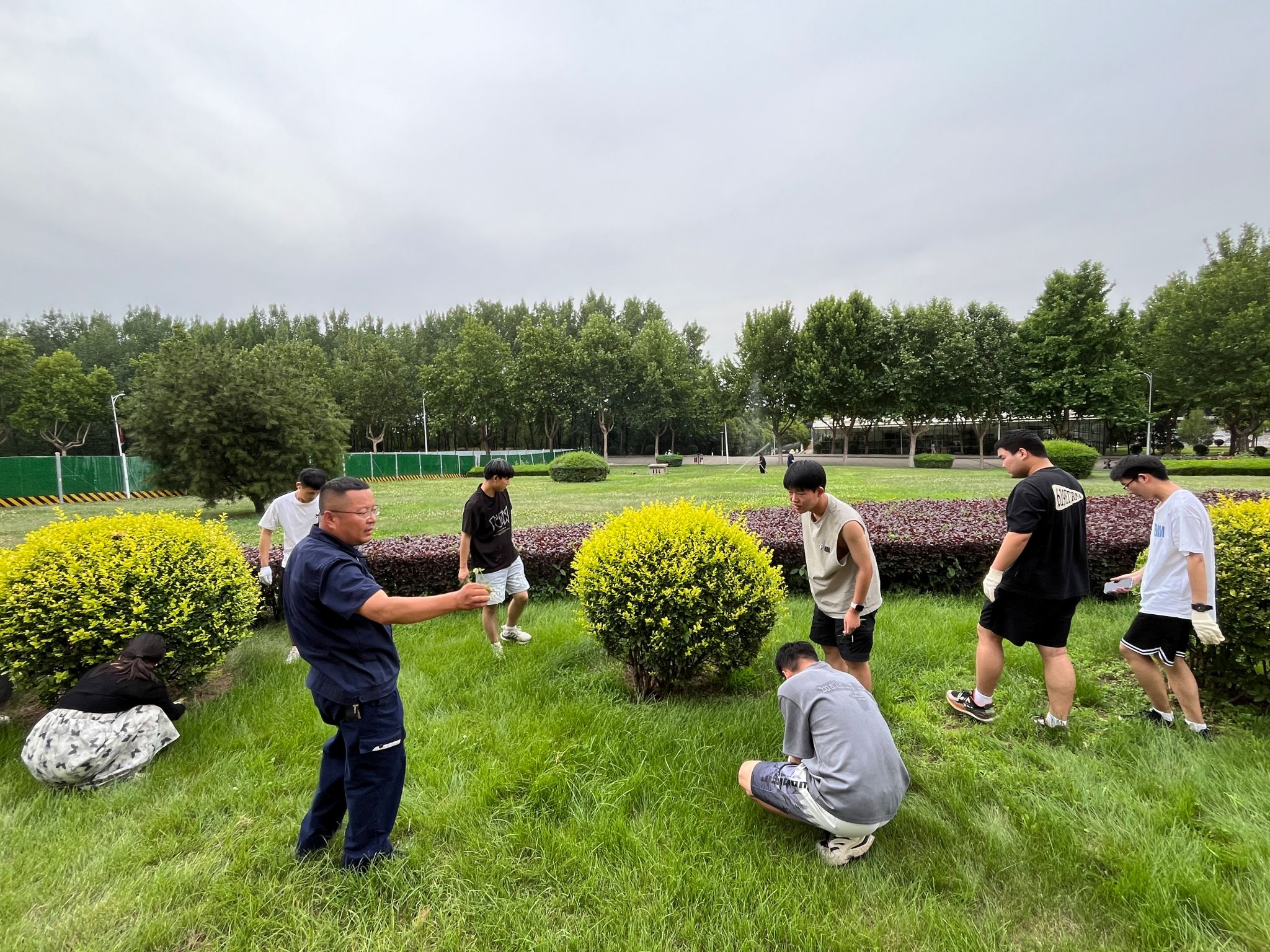 活动中,靳宏伟作为劳动实践指导老师向同学们介绍了学校绿化现状和面积、植物品种和种植现状,普及了绿化知识,同时进行了详细生动的现场教学,教会同学们如何辨别杂草、真草以及拔草的要领,强调了劳动安全注意事项。随后活动负责人宋琦对参加的同学进行合理分工,明确除草区域和任务要求,学生们戴上手套迅速投入到拔草活动中。