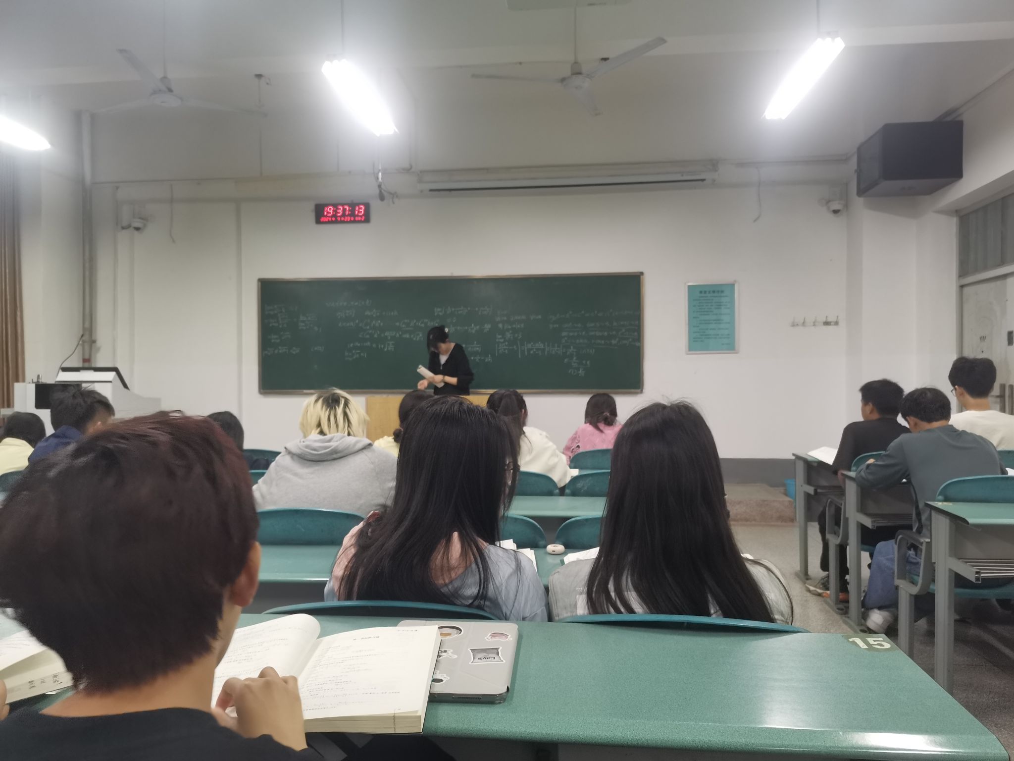本次课堂帮扶活动开设了高等数学、模拟电子技术、数学分析、概率论与数理统计、常微分方程课程,采取线下授课+线上QQ群答疑相结合的方式。在授课环节,2020级微电子科学与工程1班钟芝林和数学与应用数学1班张花萍首先分别集中性地、有针对性地讲解高等数学和数学分析的理论知识,对各章节之间的关联与抽象概念进行了串联,为同学们系统的归纳和总结相关知识考点、重要公式以及常见题型的解题思路,同学们认真听讲,并记录课堂笔记。随后以经典例题巩固学生的知识储备,引导同学们启发性思考,同学们在掌握知识的同时,也培养了解决问题的能力。最后,针对学生提出的课后习题他们现场剖析答题思路,通过板书演示解题过程,让同学们真正学会这一类题型的解题方法。