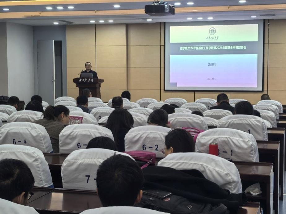 首先,学院副院长冯进钤教授为全体教师详细介绍了2024年关于国家自然科学基金的申请情况和2025年学院关于国家自然科学基金申报工作部署。他分析了基金申报中容易出现的一些问题,包括选题陈旧、研究方案的可行性较低、代表作不具备影响力等。同时,强调大家应当细读2025年申请指南,对标国家重点和优先发展领域,寻求与自己研究领域的有机结合;要提前谋划组建研究团队,积极参加本领域的学术会议,加强与业内同行的沟通交流等。马盈仓进行了总结,他强调了国基金的重要性,表示学院党政领导均高度重视项目申报工作,学院也将给予大力支持,要求全院教师早做准备,打磨提升申报书质量,提升代表作质量,祝愿2025年学院国基金有好收获。
