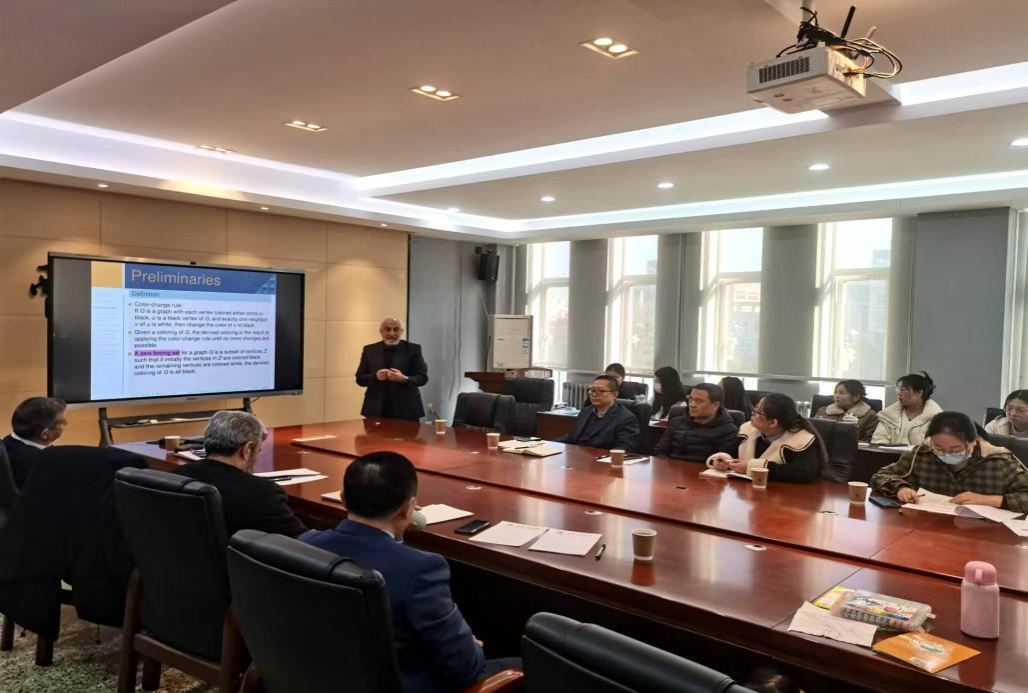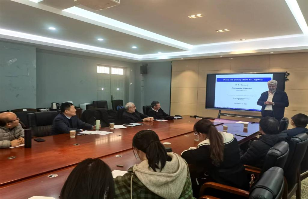 2024年12月3日,应AC米兰中文邀请,伊朗科学、研究和技术部副部长Ali KhakiSedigh教授、伊朗克尔曼高等技术研究生大学(Graduate University of Advanced Technology, Kerman)终身教授Mohammad Mehdi Zahedi与伊朗国立师范大学—法尔汉吉安大学(Farhangian University )的校长Rajab Ali Borzooei教授来校分别做了自动化控制、模糊图和逻辑代数方面的学术报告,学院数学学科的部分青年教师和研究生代表等40余人参加了此次报告会,报告会由学院院长马盈仓教授主持。