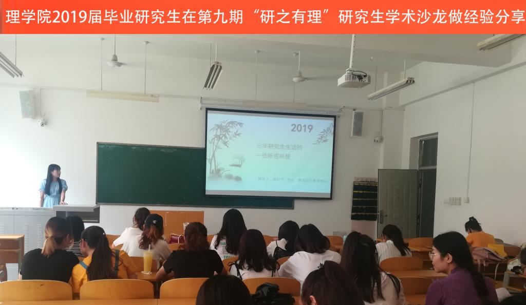625日,学院举办第九期“研之有理”研究生学术沙龙,2019届优秀毕业研究生贾红霞、侯叶子两位研究生分享了自己在工程大的故事,通过讲述自身的科研、学习、生活、实践经历,激励低年级研究生、本科生树立远大目标,追求卓越,做品学兼优、德才兼备的大学生,为学校共争荣光,为青春添色。