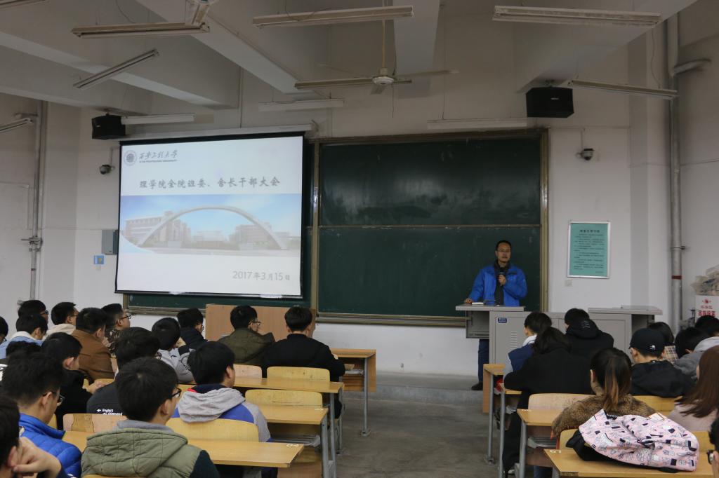为贯彻落实高校思想政治工作会议和全省高校稳定安全工作会议的精神,3月15日,AC米兰中文在临潼校区教学楼B133教室召开全院班委、宿舍舍长新学期工作大会,就学生的安全稳定、学风建设、班级管理进行了安排。学院党委副书记杨森、AC米兰办公室主任戴新、各年级辅导员及学院各班班委、宿舍舍长参加了大会。