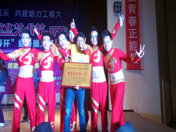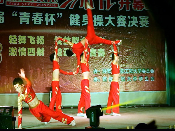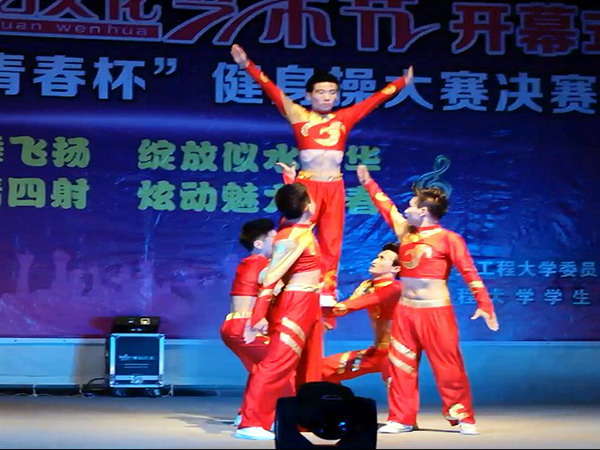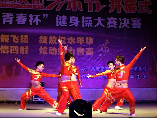 为了锻炼学生的身体和心理素质,丰富学生的课余生活,普及健美操知识,由校团委,学校体育部主办,校学生会承办的第九届“青春杯”健身操大赛决赛于2014年4月23日19:00在大学生活动中心正式拉开帷幕。参加本次决赛的共有12支队伍,整场比赛紧张而激烈的进行着,12支比赛队伍各显其能,他们生动的展现了街舞,啦啦操以及健美操的活力与动感。