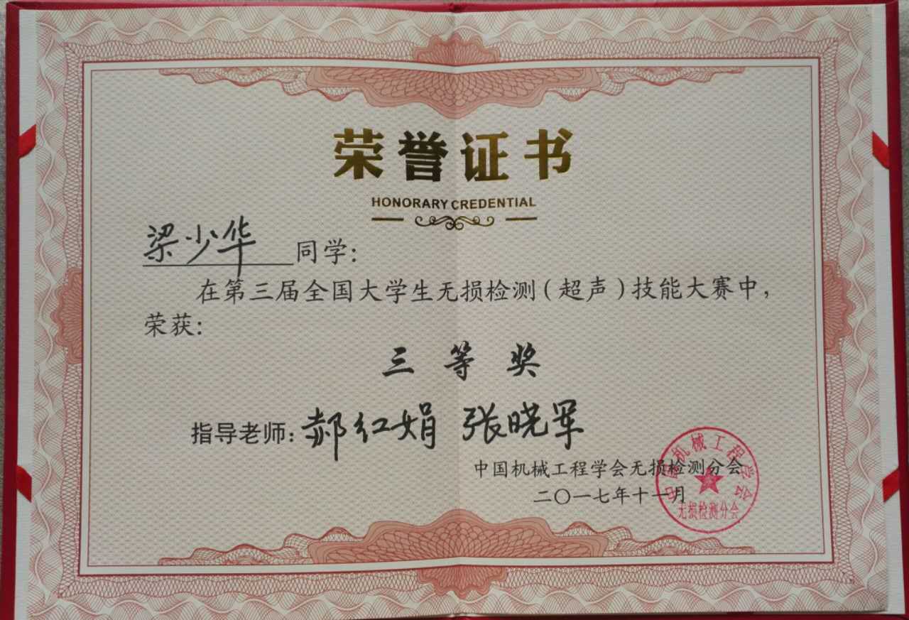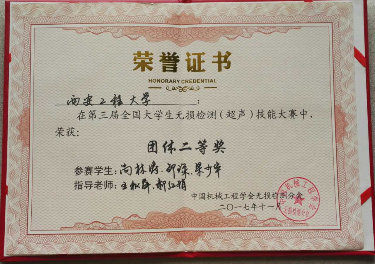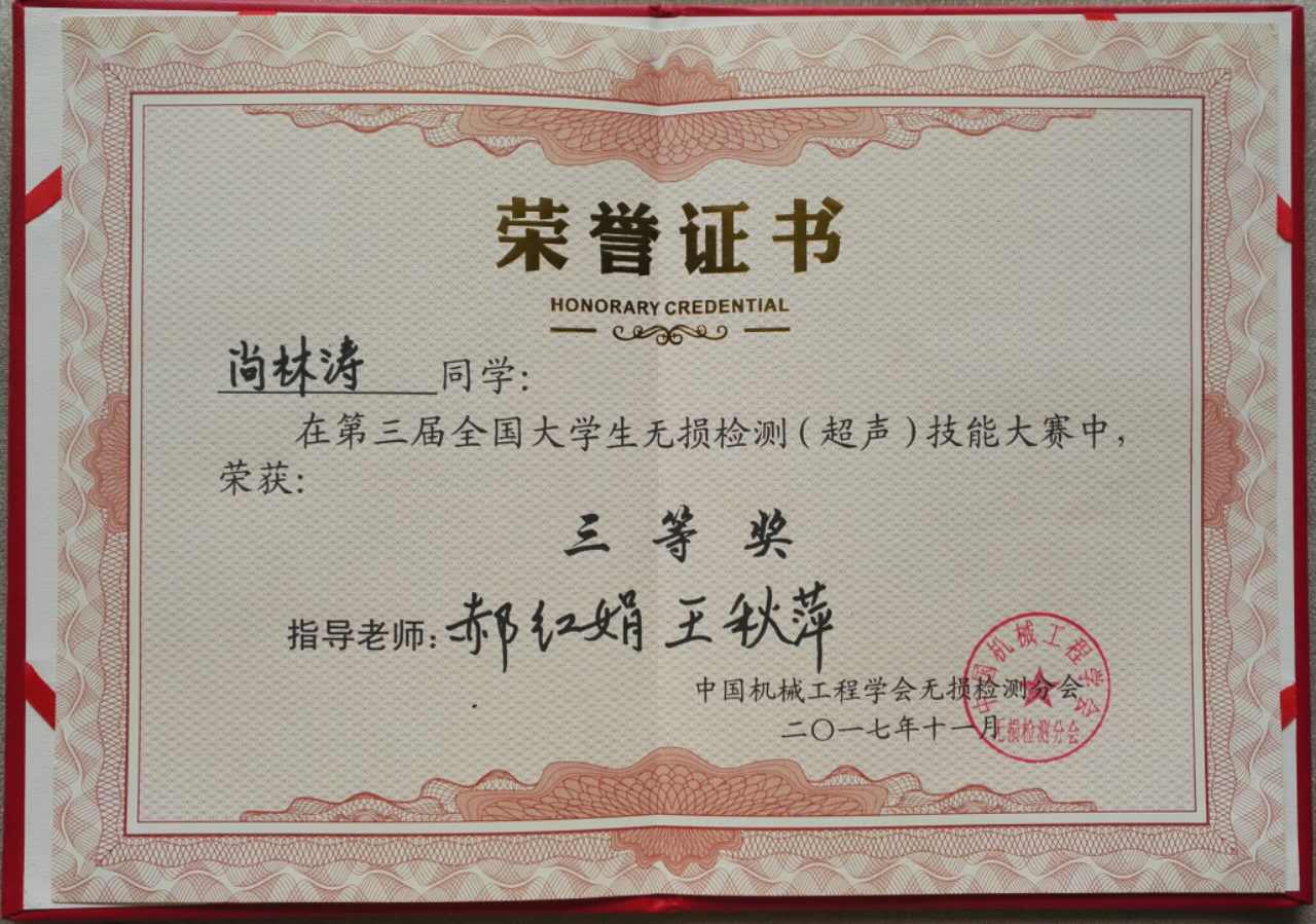 11月17至18日,由中国机械工程学会无损检测分会主办,南昌航空大学承办的第三届全国大学生无损检测(超声)技能大赛在江西南昌举行。此次大赛吸引了来自南昌航空大学、昆明理工大学、西南石油大学等二十多所高校的160多名师生参加。由我院AC米兰中文王秋萍、郝红娟两位老师带领的我校参赛队荣获佳绩。
