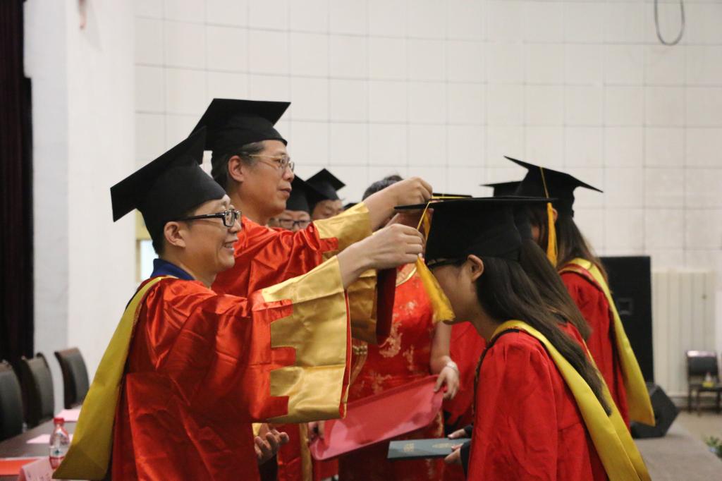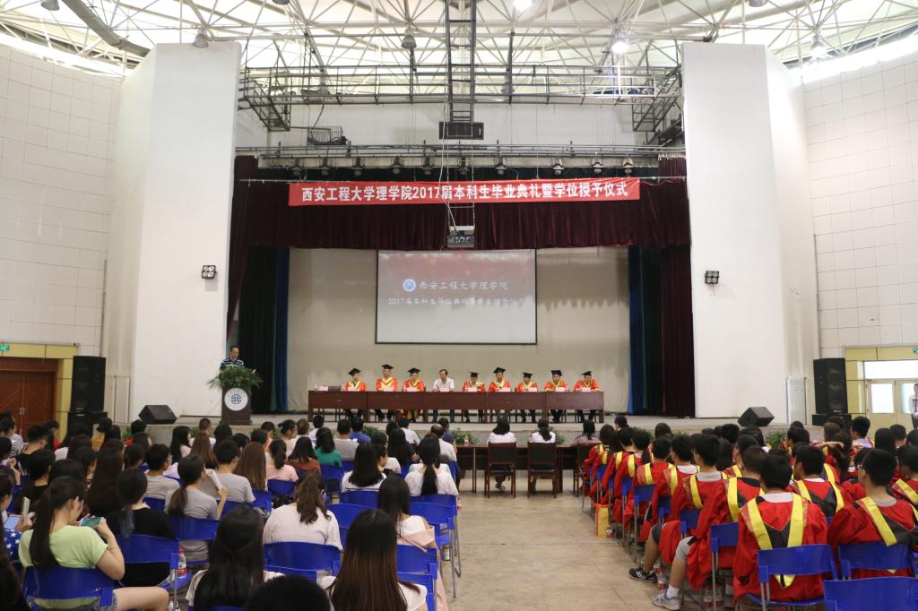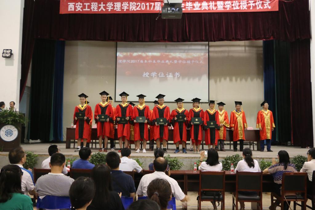 仪式在全体合唱国歌中拉开帷幕。院长薛红致辞,他代表学院对2017届毕业生顺利毕业表示祝贺,向为学生成长成才付出辛劳、无私奉献的老师和家长表示感谢。他希望毕业生们一要志存高远,锤炼品格。在今后的工作生活中胸怀理想、志存高远,把个人进步和国家富强、人民幸福相统一,积极在社会实践中锤炼品格。二要知行合一,勇于创新。躬身实践,注重在实践中学真知、悟真滴,树立敢于尝试的创新精神,勇于超越。三要脚踏实地,坚守梦想。做到脚踏实地,发扬艰苦奋斗精神,依靠勤劳和汗水开辟人生美好前程,实现心中梦想。四要心存感恩,有所担当。感恩父母、老师、学校、国家的浓浓恩情,以有所为回报亲人、母校和祖国。