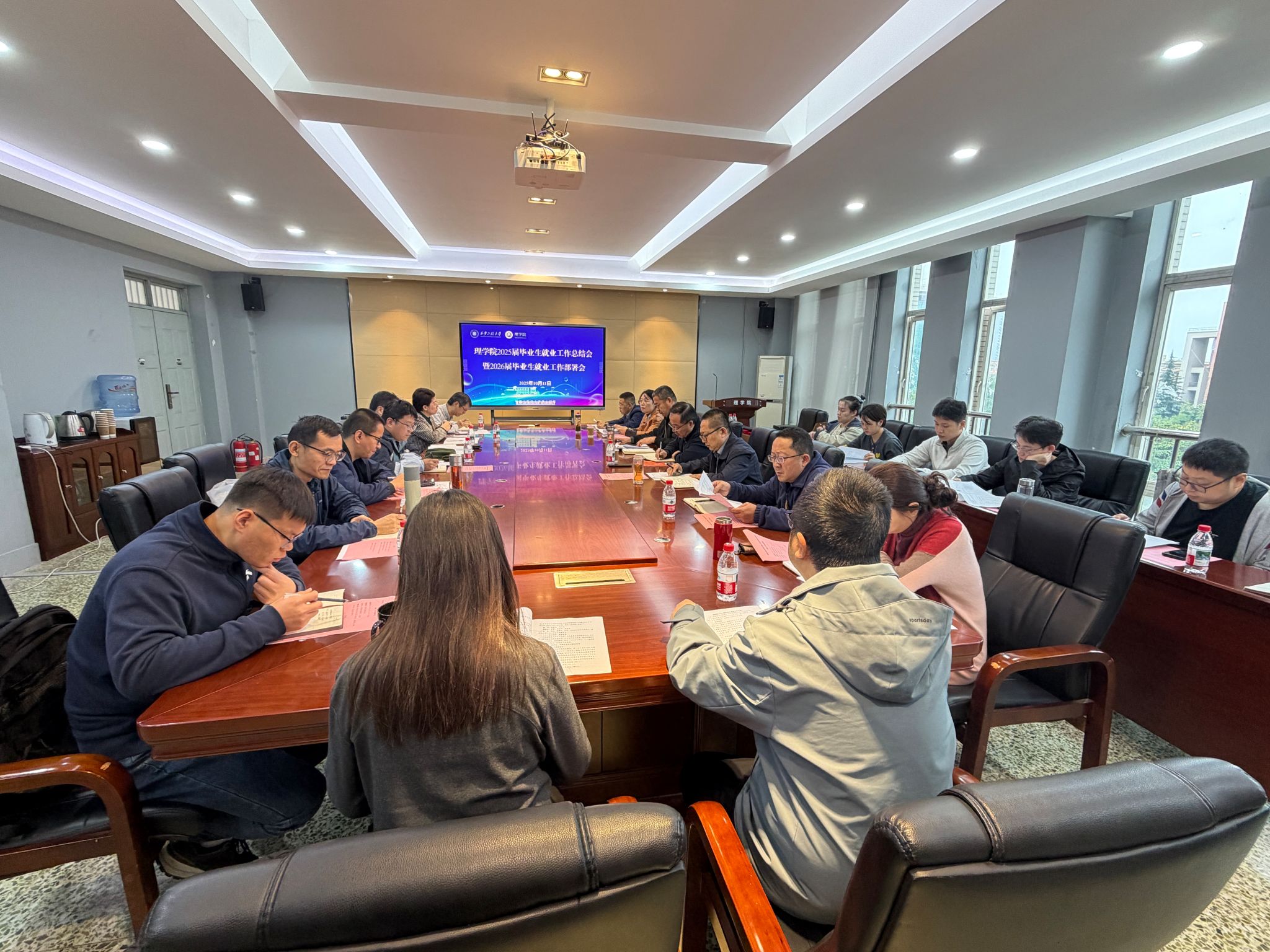 最后,学院院长马盈仓进行总结讲话。他指出,面对复杂严峻的就业形势,在全院上下共同努力下,2025届毕业生就业工作取得了很好的成绩,也积累了很多宝贵的工作经验,学院有信心做好2026届毕业生就业工作。为此,他提出三点要求:一是提高站位,强化担当,进一步凝聚全员促就业的强大合力;二是精准施策,优化服务,进一步提升就业工作的质量效能;三是锚定目标,狠抓落实,进一步促进毕业生更加充分更高质量就业。