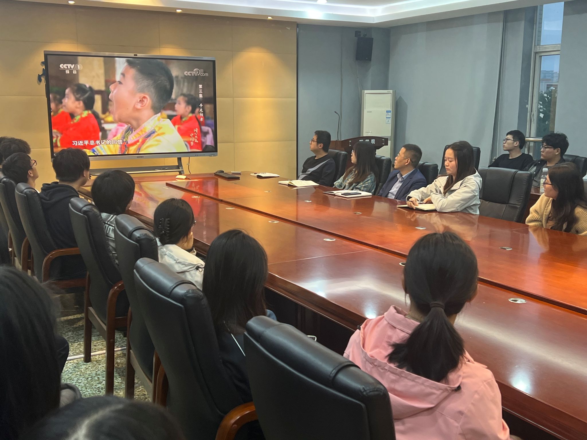 首先,师生们共同观看了央视纪录片《同心共筑中国梦》第三集《手足相亲》。该片生动展现了党团结带领全国各族人民为实现中华民族伟大复兴历史进程开展的一系列工作,推动民族团结进步事业取得的伟大成就,呈现了各民族像石榴籽一样紧紧拥抱在一起的生动画面和中华民族一家亲、同心共筑中国梦的时代风貌。一幕幕暖心场景引发了同学们强烈共鸣,为后续交流筑牢了思想与情感根基。