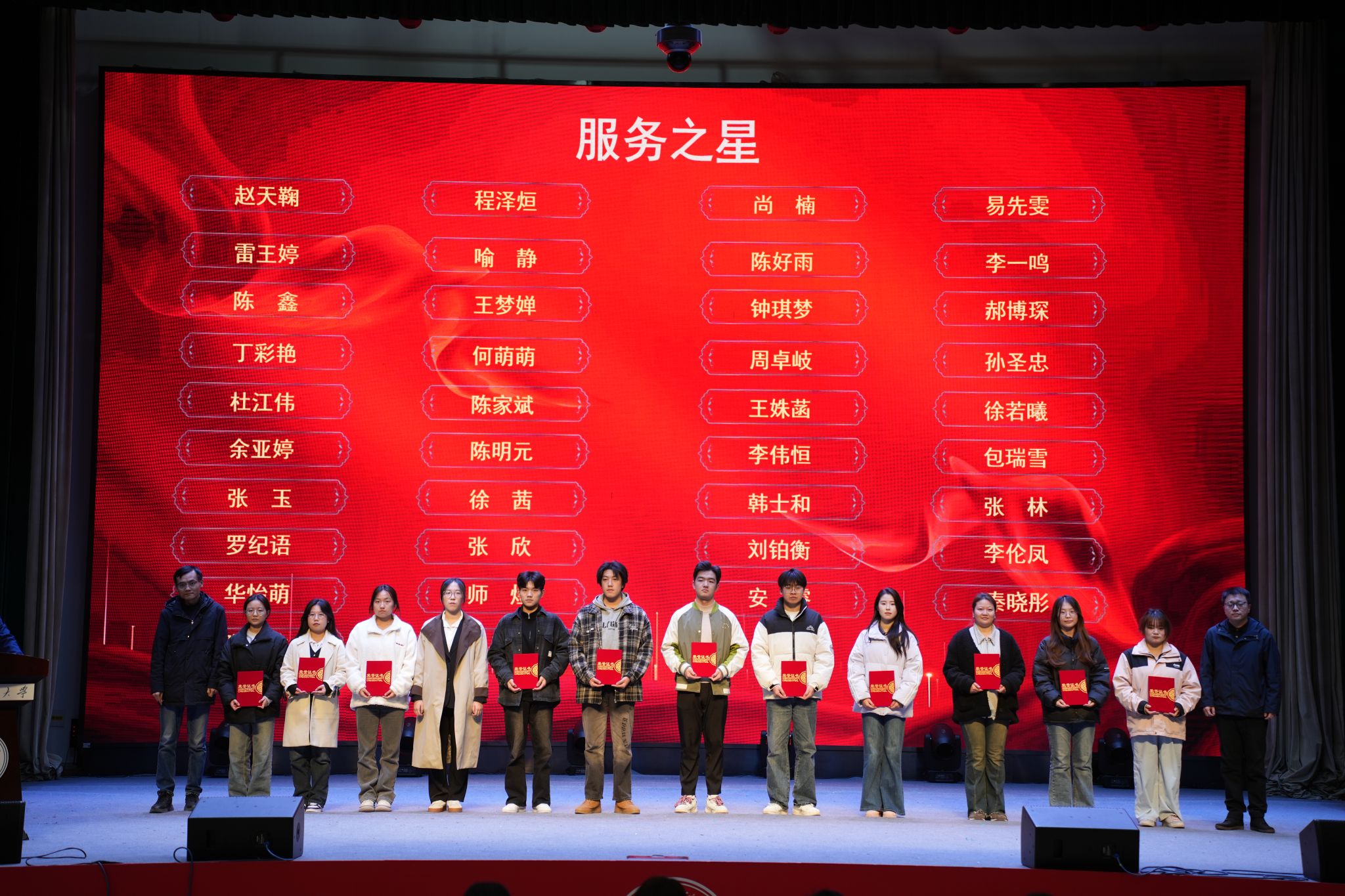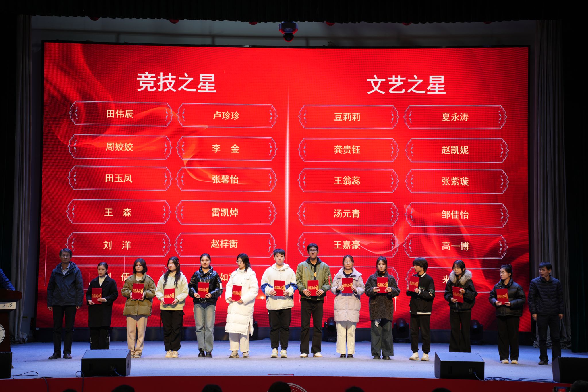 颁奖环节,与会嘉宾依次为“五星工程”先进个人、优秀宿舍、优秀学生与团员、优秀学生干部与团干部、先进班集体、学科竞赛获奖者及国家奖学金获得者等七类先进代表颁奖,全方位展现了AC米兰中文学子在德智体美劳全面发展中的卓越风采与昂扬风貌。国家奖学金获得者代表邢艺耀结合自身求学经历分享成长感悟。