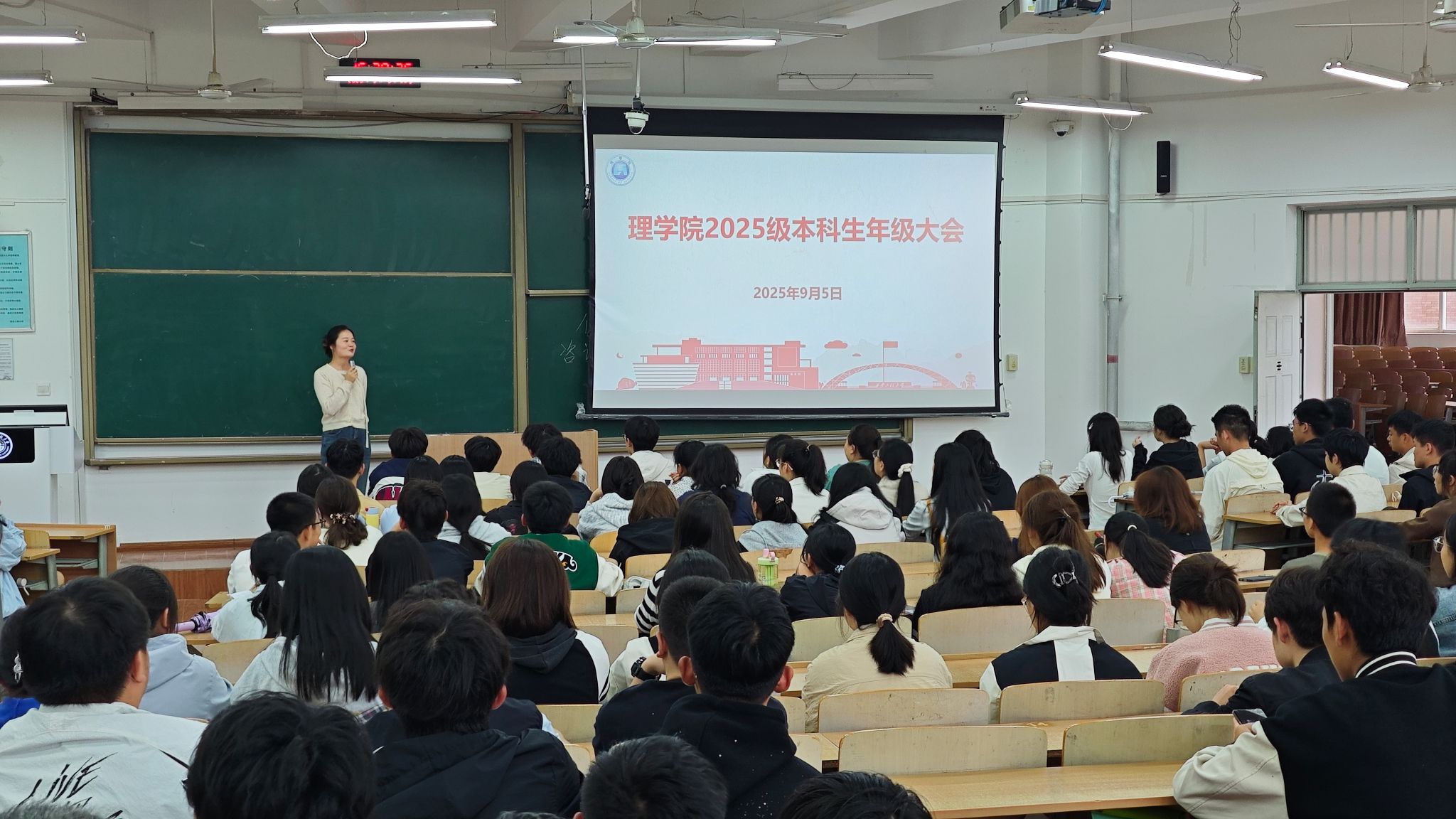 9月5日,AC米兰中文在临潼校区B237教室召开2025级本科生年级大会,旨在引导新生树立文明行为规范,增强安全防范意识,尽快适应大学学习生活。辅导员宋晓盼主持会议,学院2025级全体本科生参加。