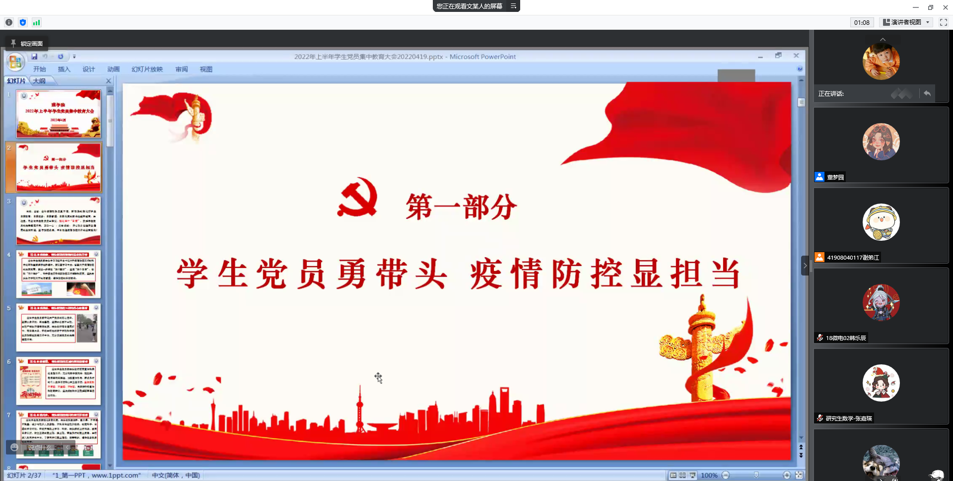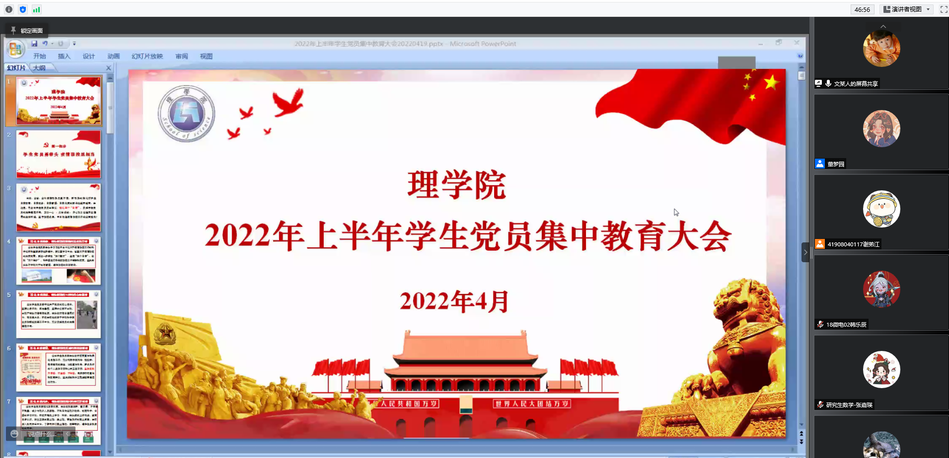 2022年4月20日下午,AC米兰中文通过线上举行了2022年上半年学生党员集中教育大会,各学生党支部书记、全体学生党员参加。
