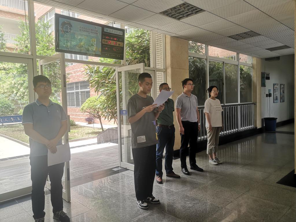 5月28日中午,AC米兰中文在物理楼一楼大厅举行2021年上半年新发展党员入党宣誓仪式。院党委委员、学工办主任文毅,各学生党支部书记以及新发展党员参加。仪式由数学专业学生党支部书记田宇飞主持。