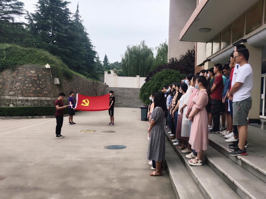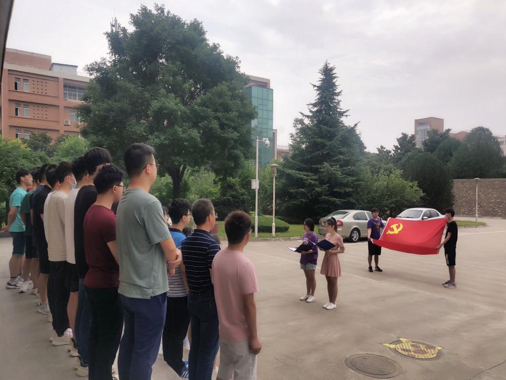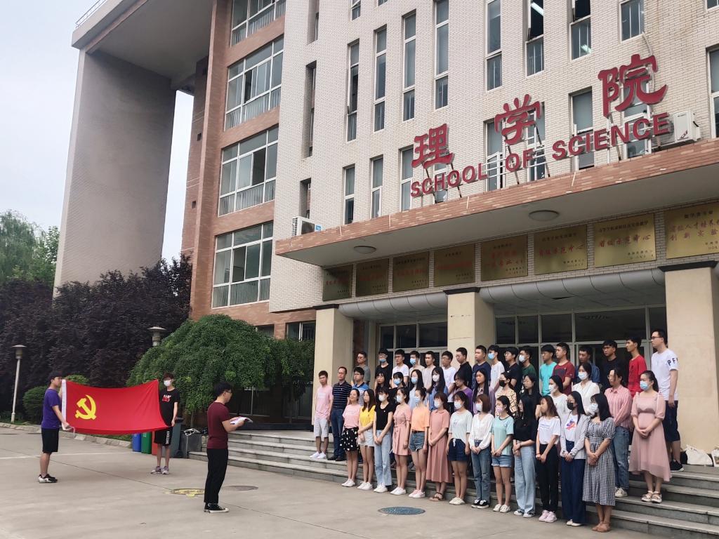 上午9时,活动在物理实验楼前举行,鲜红的党旗擎起一颗颗赤诚的心 ,醒目的誓词凝聚起不忘初心的信念与力量。在领誓人学生党员王殿文带领下,全体党员举起右拳,在党旗下接受心灵的净化和洗礼,重温入党时的决心和理想。全体成员用激荡的声音和饱满的热情表达了作为共产党员的自豪感与使命感,抒发对党忠诚的意志和信念。