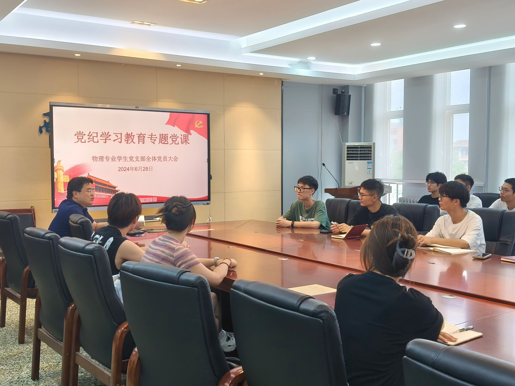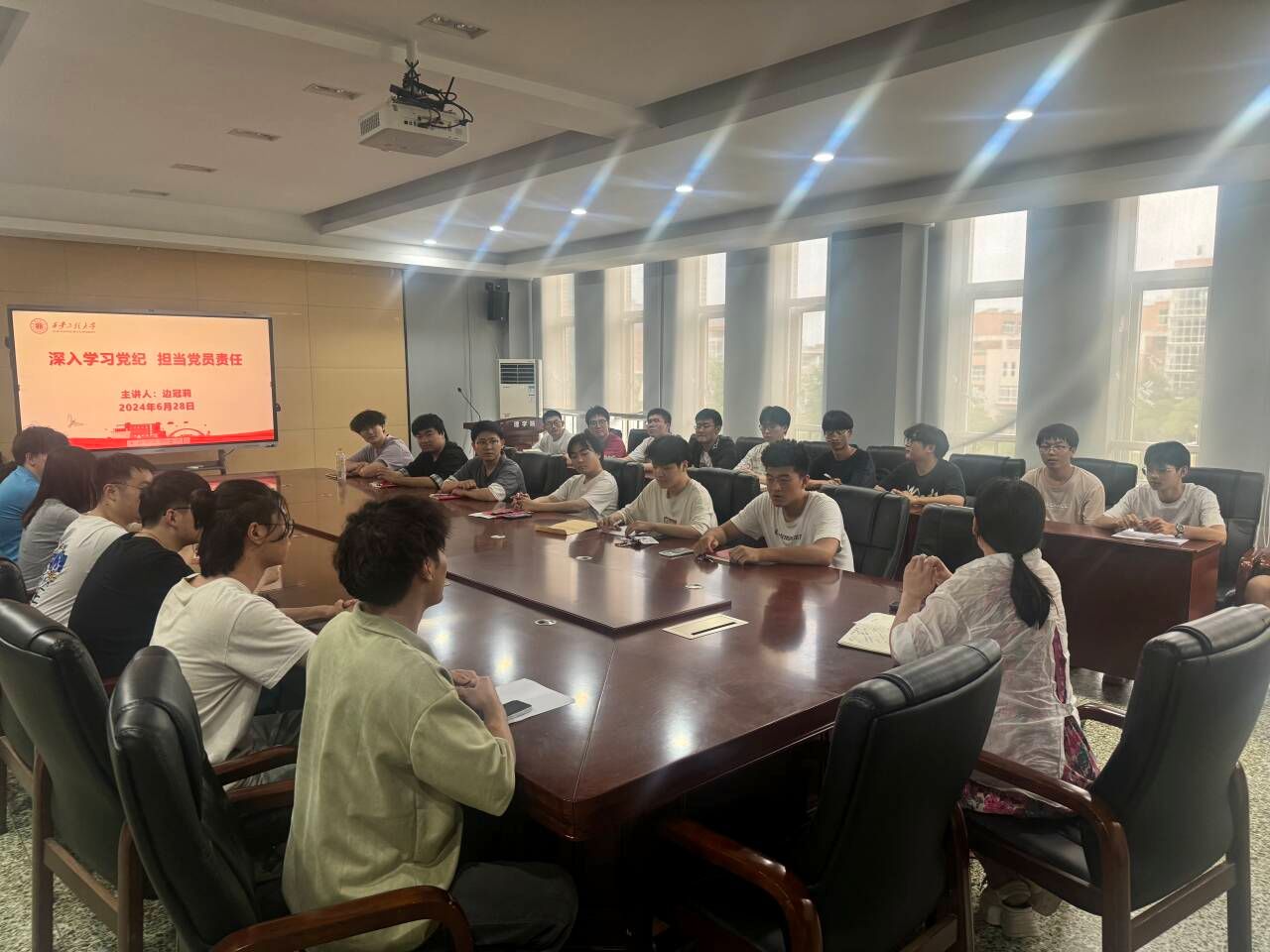在专题讲课讲授中,工科物理党支部书记陈爱民以“坚定信仰 践行党纪”为题,从四个方面就如何学习党规党纪,把党纪学习教育成果转化成履职尽责的强大动力展开了详细阐述;专业数学党支部书记冯进钤以“以党纪为镜 提升业务能力”为题,提出要以高度的政治责任感和使命感,把党纪学习教育作为加强党性修养的重要途径,不断提高自身政治素质和业务能力;微电专业学生党支部书记边冠莉以“深入学习党纪 担当党员责任”为题,加深了支部党员对《条例》的了解,进一步明晰了党的纪律要求、党员的行为准则,强化了党性观念和基本素质。其余各党支部书记也都围绕党纪学习教育主题进行了讲授。