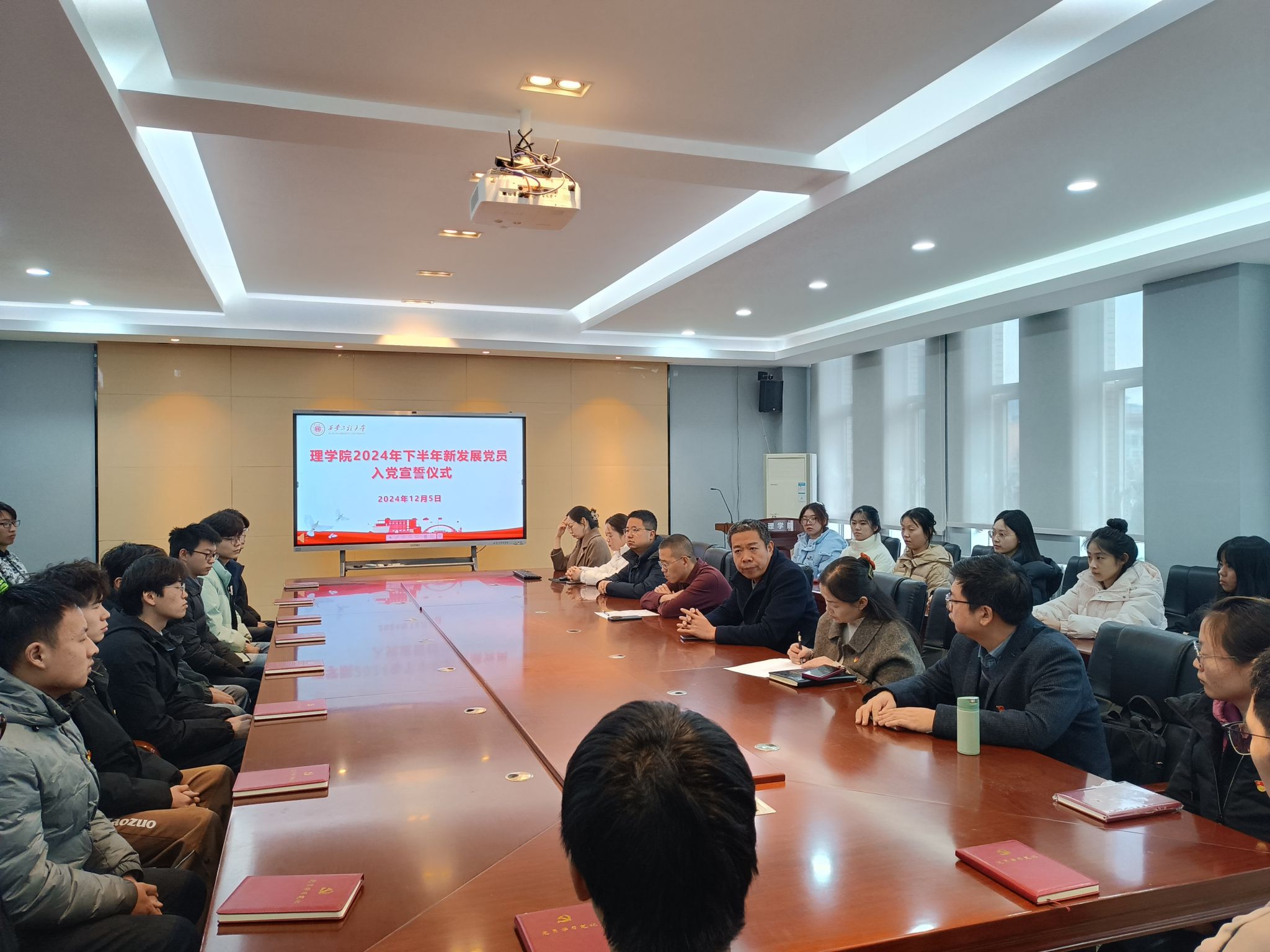 刘玉森代表学院对新加入党组织的同学们表示祝贺,同时提出三点要求:一是坚定理想信念,树立远大目标。要始终以习近平新时代中国特色社会主义思想为指导,把个人发展目标和国家发展命运紧密结合在一起。二是加强学习实践,提升综合素质。要加强对党的理论和专业知识的同步学习,用理论武装自己,提升就业和考研竞争力。三是勇于担当作为,做好示范表率。要用坚定的信念、担当的精神、良好的品行带动周围同学共同进步,为学院发展贡献力量。(撰稿:边冠莉 审稿:刘玉森)