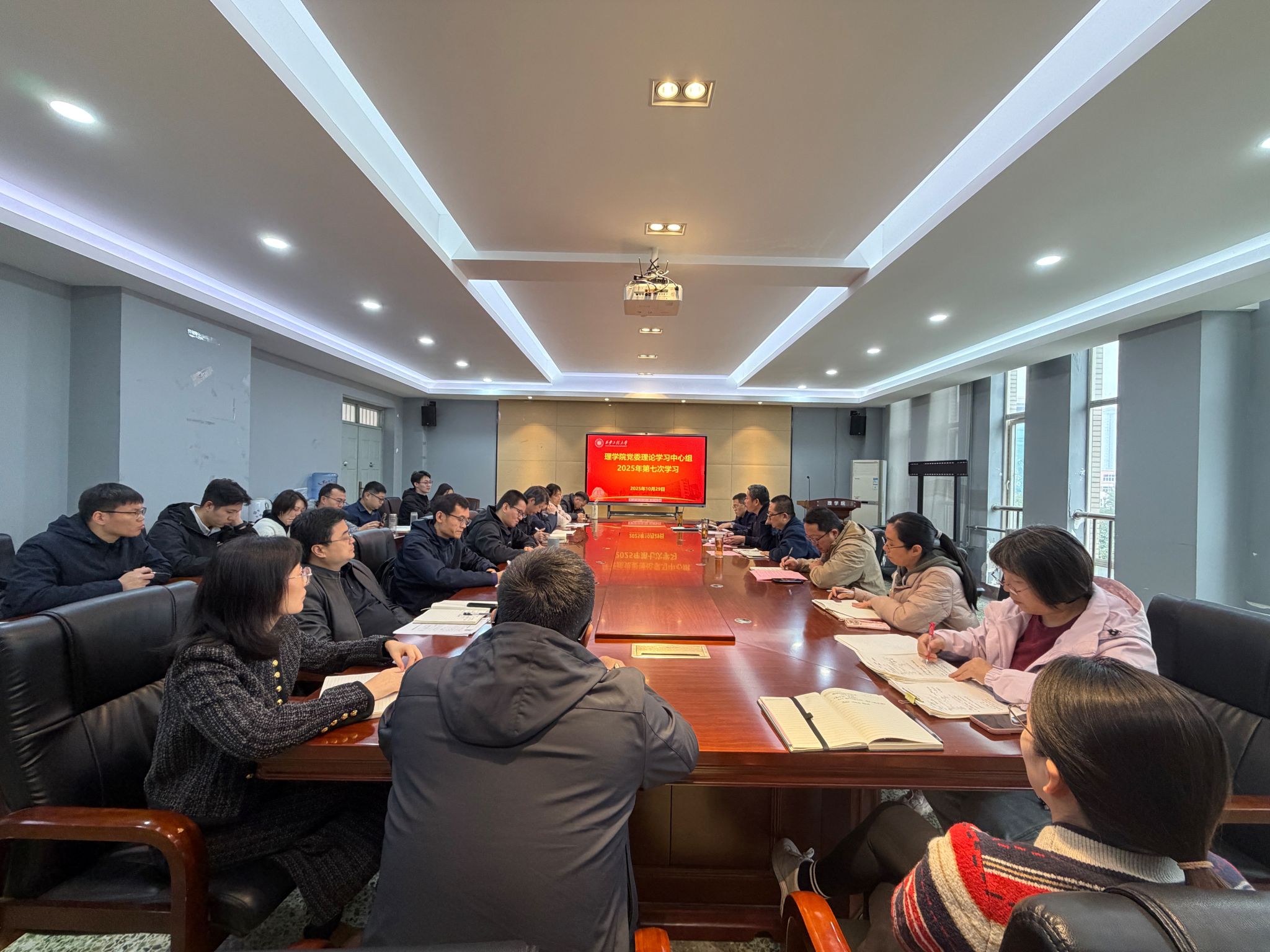 10月29日,AC米兰中文党委理论学习中心组召开2025年第七次集体学习(扩大)会。学院党委理论学习中心组成员、各系部主任、全体党支部书记参加会议。会议由院党委副书记刘玉森主持。