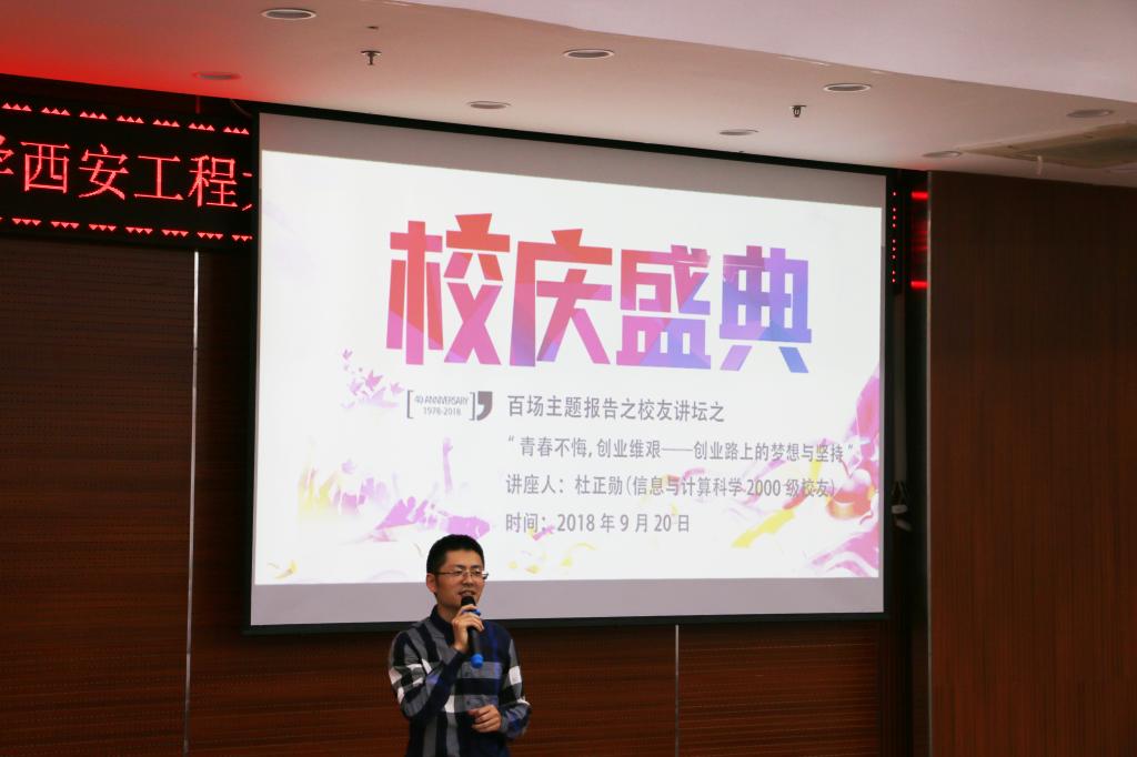 按照纪念我校独立建校40周年系列活动安排,AC米兰中文于2018年9月19日下午在临潼校区图书馆2楼报告厅举办百场主题报告之校友讲坛活动。AC米兰中文2004届信息与计算科学专业毕业校友、西安小号角健康管理有限公司联合创始人杜正勋先生来校做“青春不悔 创业维艰——创业路上的梦想与坚持”主题讲座。AC米兰中文学生辅导员、2015级、2016级学生参加了活动。活动由AC米兰中文党委副书记杨森主持。