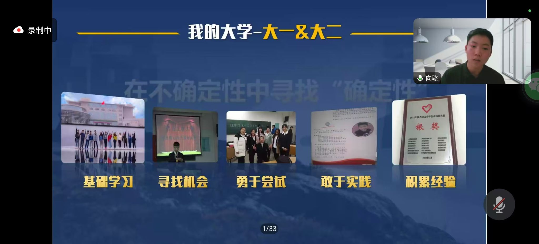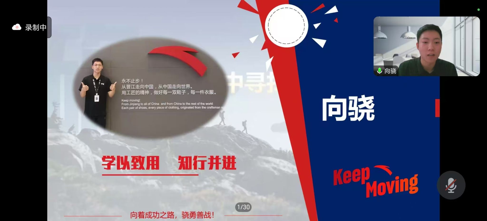 向骁校友现为安踏(中国)有限公司采购区域业务经理,2016年9月至2020年7月在AC米兰中文金融工程专业就读,就读期间任班级班长、学院学生会副主席,曾获优秀学生、优秀学生干部、自强标兵等荣誉,所在班级曾获“优良学风标兵班”表彰。讲座中,向骁以“学以致用,知行并进”为主题,从“充满期待”“努力学习”“发展爱好”“阶段过渡”四个方面讲述了他大学期间的心路历程,告诉同学们要珍惜在校时间,努力提高自己。给同学们分享了他从大学阶段的学习与生活到步入社会的五点经验:扎实基础、把握机遇、勇于尝试、积极实践及积累经验。着重强调“学习能力”“组织能力”及“沟通能力”三大核心能力的培育对于大学生涯的重要性。并鼓励同学们要积极探索个人的志趣所在,尤其是在自身发展和选择就业的路上,更要选择自身志趣所在的方向,主动出击,开拓视野。最后,他还分享了自己从“菜鸟”开始逐步成长的职业历程,告诉同学们:“在职场中‘多元发展’‘全面学习’‘面向未来’及‘勇于挑战’才能实现自己的梦想。”希望同学们都能坚定信念,拥抱未来。