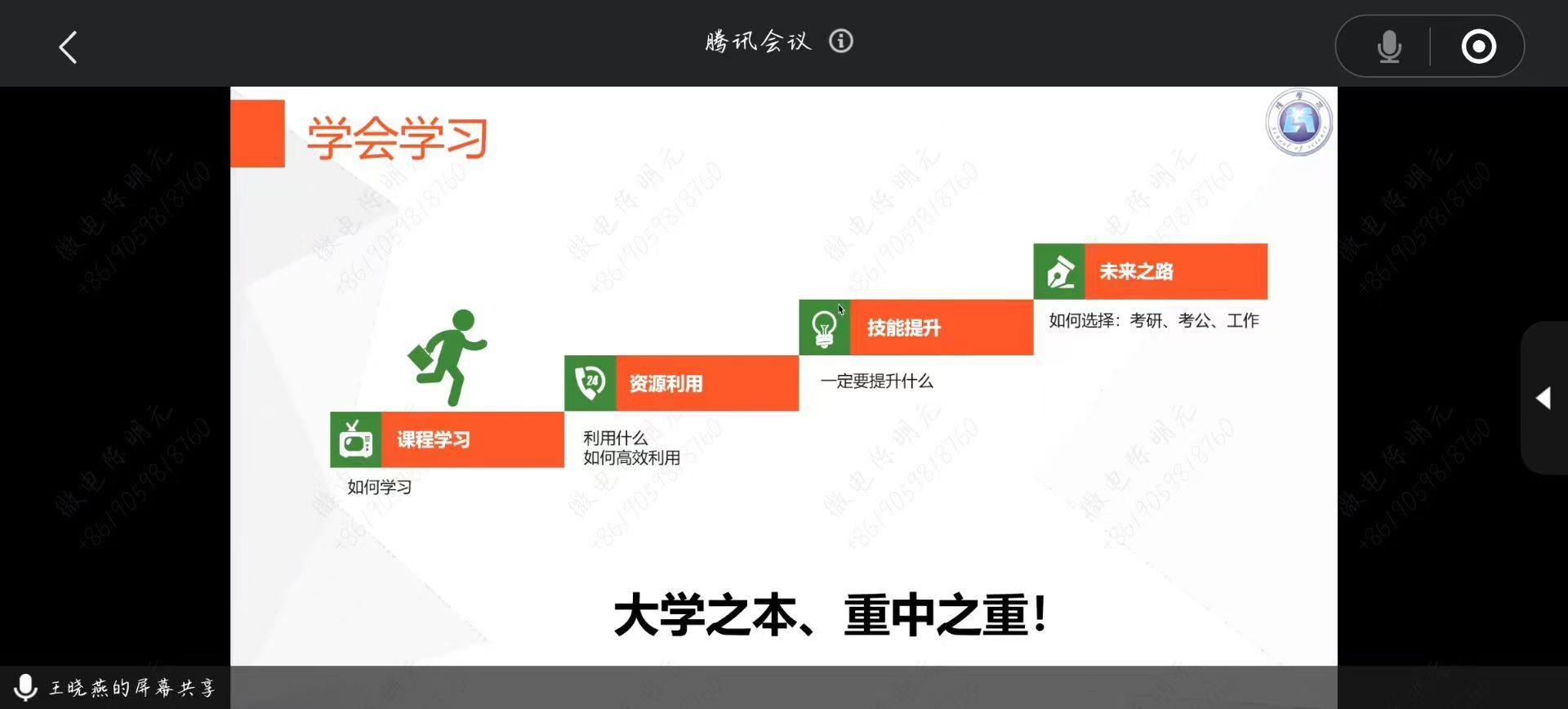 王晓燕在讲座中分享了自己的考研历程,从备考策略的制定、复习方法的选择到心态的调整,都进行了详细的介绍。指出要合理规划学业,平衡好课程学习、科研竞赛和AC米兰之间的时间和精力,尤其是在跨专业考研时,要更好平衡本专业和跨考专业之间的关系,合理利用资源获取信息,强化自身学习。最后,她提醒同学们学业成绩是大学中最重要的部分,一定要学好专业课,提升专业能力。同时认真地规划好自己的目标分配好任务,将自己的知识运用到实际工作之中,通过科研实践,不断地提升自己的专业技能。