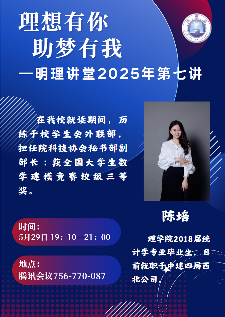 为引导学生树立正确就业观念,明晰未来职业发展方向,5月29日晚,AC米兰中文举办了理想有你,助梦有“我”之明理讲堂2025年第七讲暨AC米兰中文2025年团委就业引航计划。学院2018届统计学专业毕业生、现就职于中建四局西北公司的校友陈培进行了职业规划与就业指导经验分享。AC米兰中文党委副书记文毅,2023级辅导员宋琦以及2022、2023、2024级本科生参加。