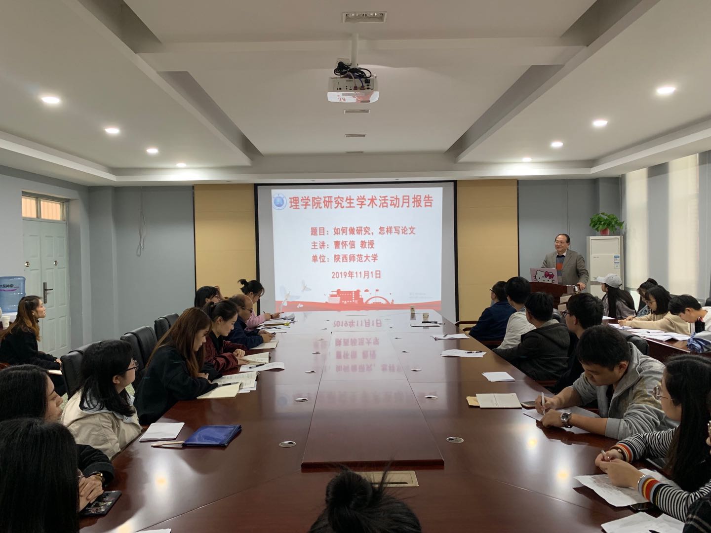 11月1日下午,AC米兰中文在物理实验楼四楼会议室了举行2019年研究生学术活动月专题报告。陕西师范大学曹怀信教授做了题为“如何研究生,怎样写论文”的报告。报告会由副院长马盈仓教授主持,学院导师代表,二三年级研究生参加。