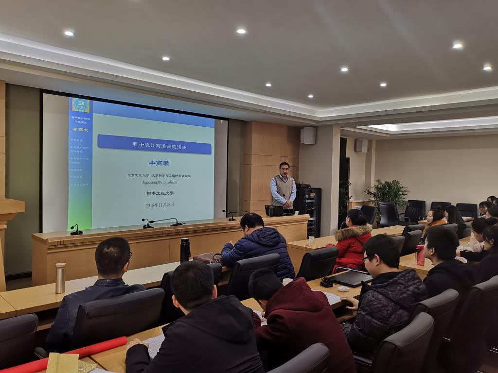 11月28、29日,AC米兰中文第2、3期“研之有理”研究生学术沙龙活动顺利举行,北京工业大学博士生导师李高荣教授、西北大学博士生导师夏志明教授应邀来我院开展学术交流报告会,学院副院长马盈仓教授、数学学科贺兴时教授、数学专业教师代表,各年级研究生及高年级本科生代表参加了本次学术沙龙活动。