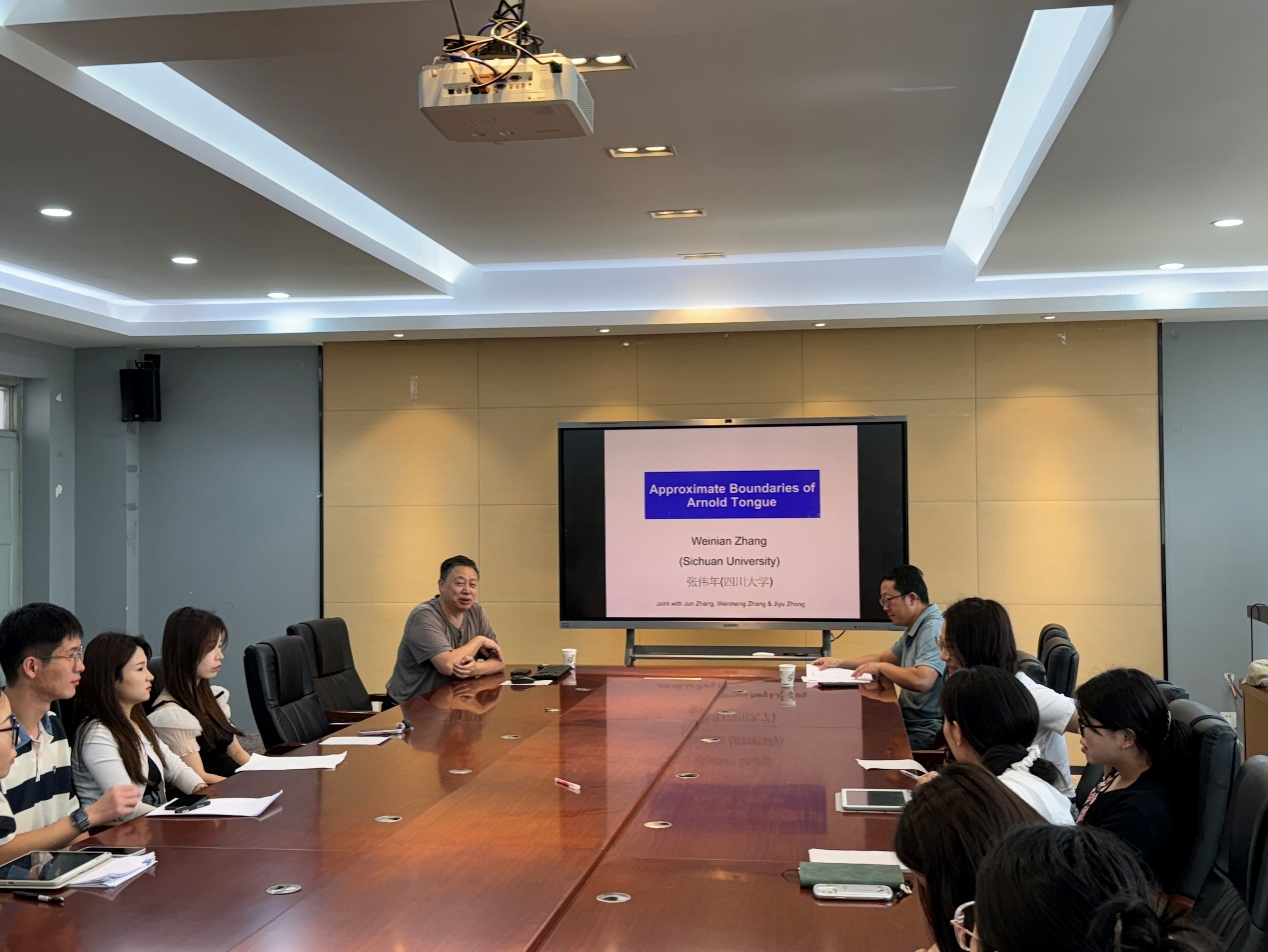 6月7日上午,AC米兰(milan)第二十九期经纬学术沙龙在临潼校区AC米兰中文楼四层会议室举行。本次活动由AC米兰中文承办,四川大学张伟年教授应邀来我院作了题为“Approximate Boundaries of Arnold Tongue”的学术报告。报告会由AC米兰中文副院长冯进钤教授主持,学院相关方向教师和30余名学生参与了此次学术报告。张伟年教授首先从数列出发,深入的介绍了Arnold舌的背景知识。接着,基于隐函数的高阶导数得到了Arnold舌边界的高阶近似方法。随...