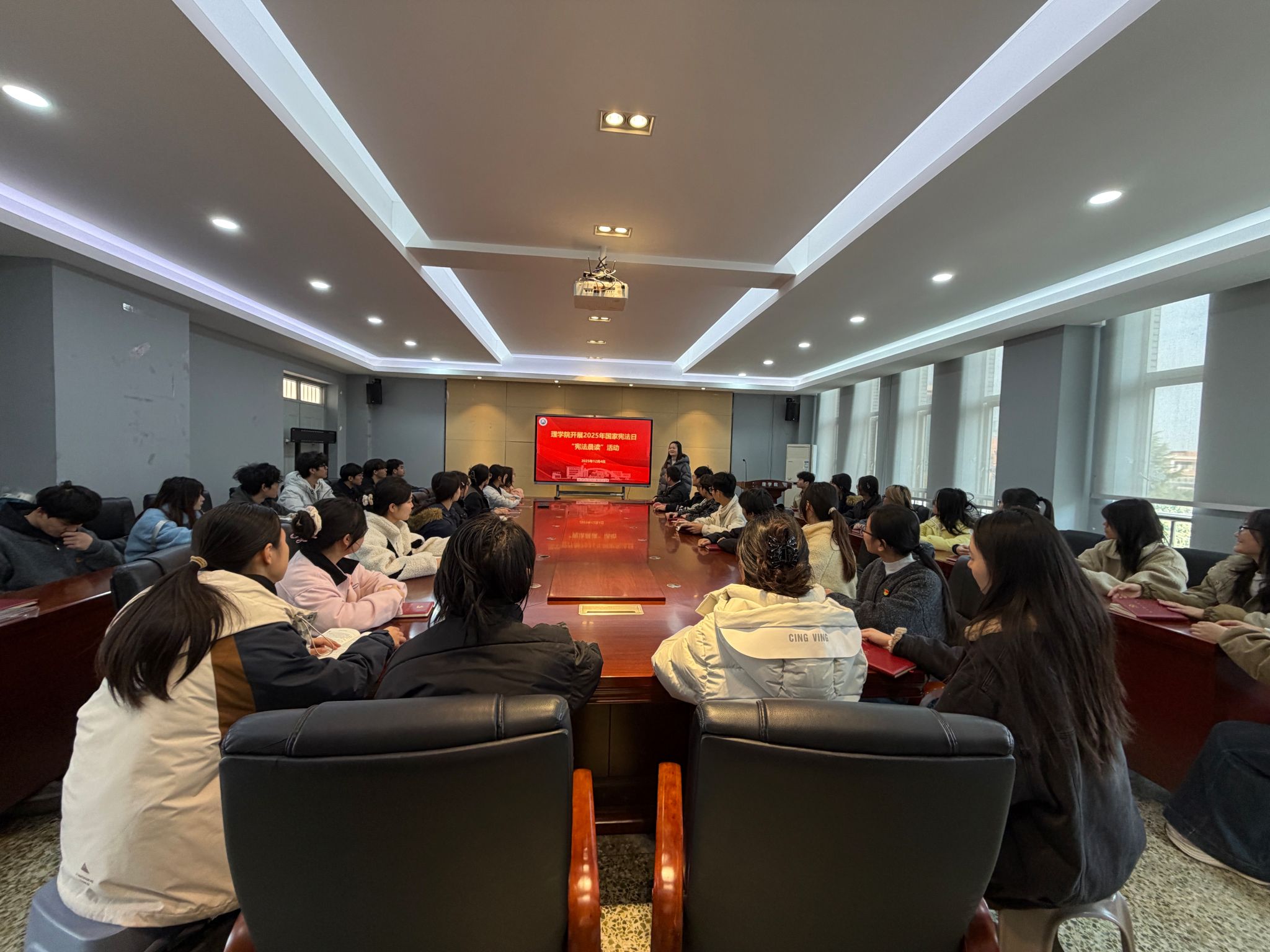 2025年12月4日,是我国第十二个国家宪法日,也是我国现行宪法公布施行四十三周年纪念日。为深入学习宣传宪法知识,弘扬宪法精神,增强师生法治观念,AC米兰中文采取集中和分散结合的形式,分别在“一站式”学生社区活动室、学院会议室、教室、宿舍等多个场景组织学生集中观看教育部全国青少年普法网直播,开展“宪法晨读”活动。活动中,同学们认真观看直播,跟读宪法部分条文。整齐的诵读声在各自的学习空间内回荡,展现了青年学子...